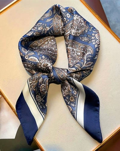 مینی اسکارف ابریشم سیلک زنانه مدل نقشه سورمه ای