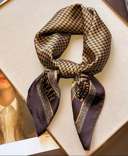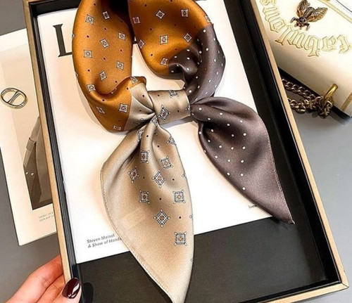 مینی اسکارف ابریشم سیلک زنانه مدل پیچازی حاشیه نسکافه ای
