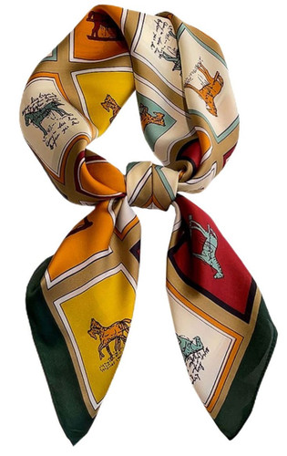 مینی اسکارف ابریشم سیلک زنانه مدل حیوانات کرم
