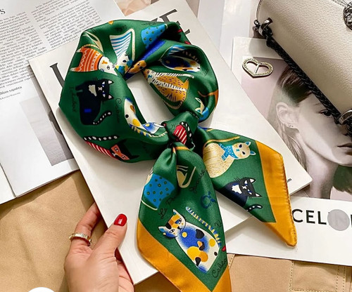 مینی اسکارف ابریشم سیلک زنانه مدل گربه سبز