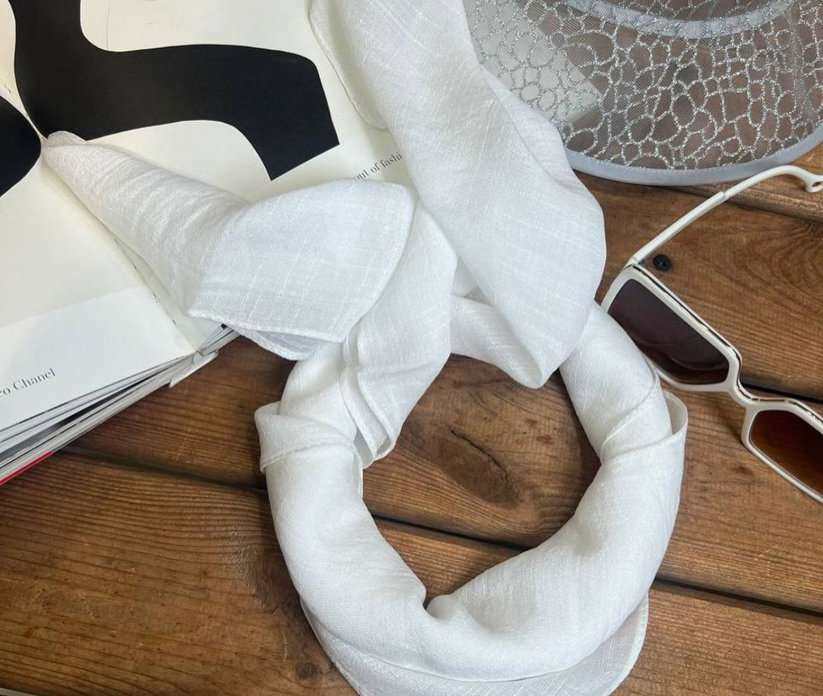 مینی اسکارف نخی اسلپ زنانه سفید ساده