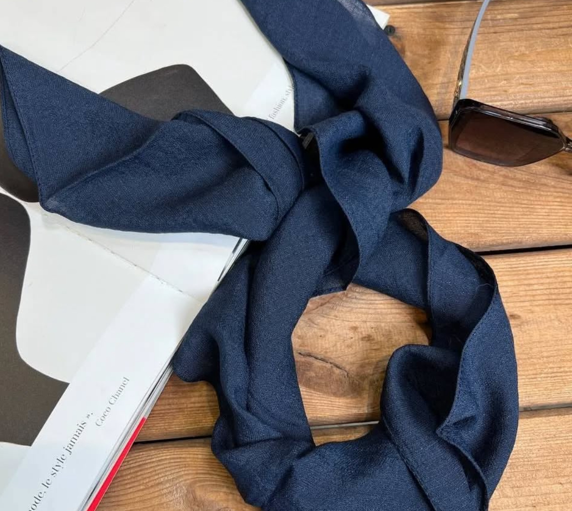 مینی اسکارف نخی اسلپ زنانه سورمه ای ساده