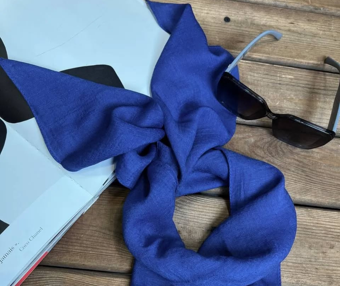 مینی اسکارف نخی اسلپ زنانه آبی کاربنی ساده