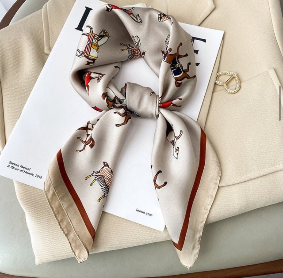مینی اسکارف ابریشم سیلک زنانه مدل اسب قهوه ای