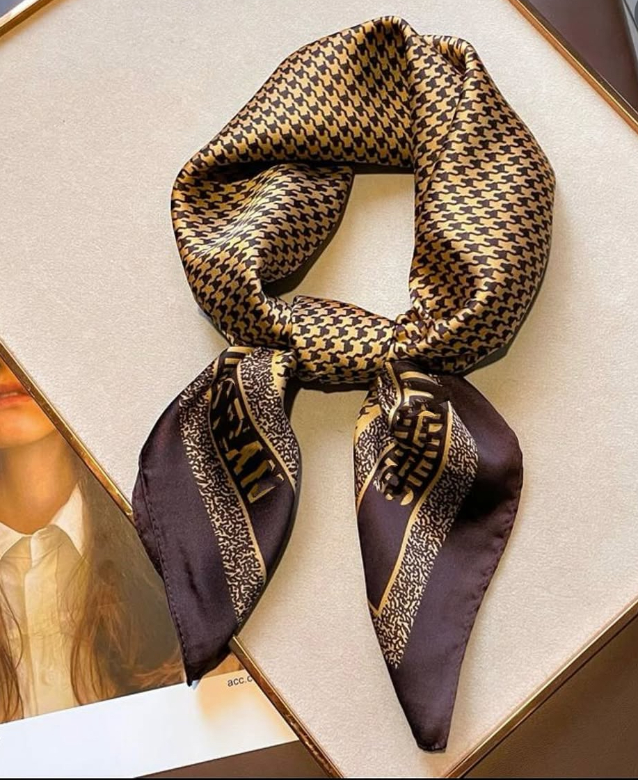 مینی اسکارف ابریشم سیلک زنانه پیچازی قهوه ای