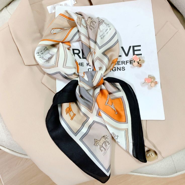 مینی اسکارف ابریشم سیلک زنانه مدل حیوانات کرم