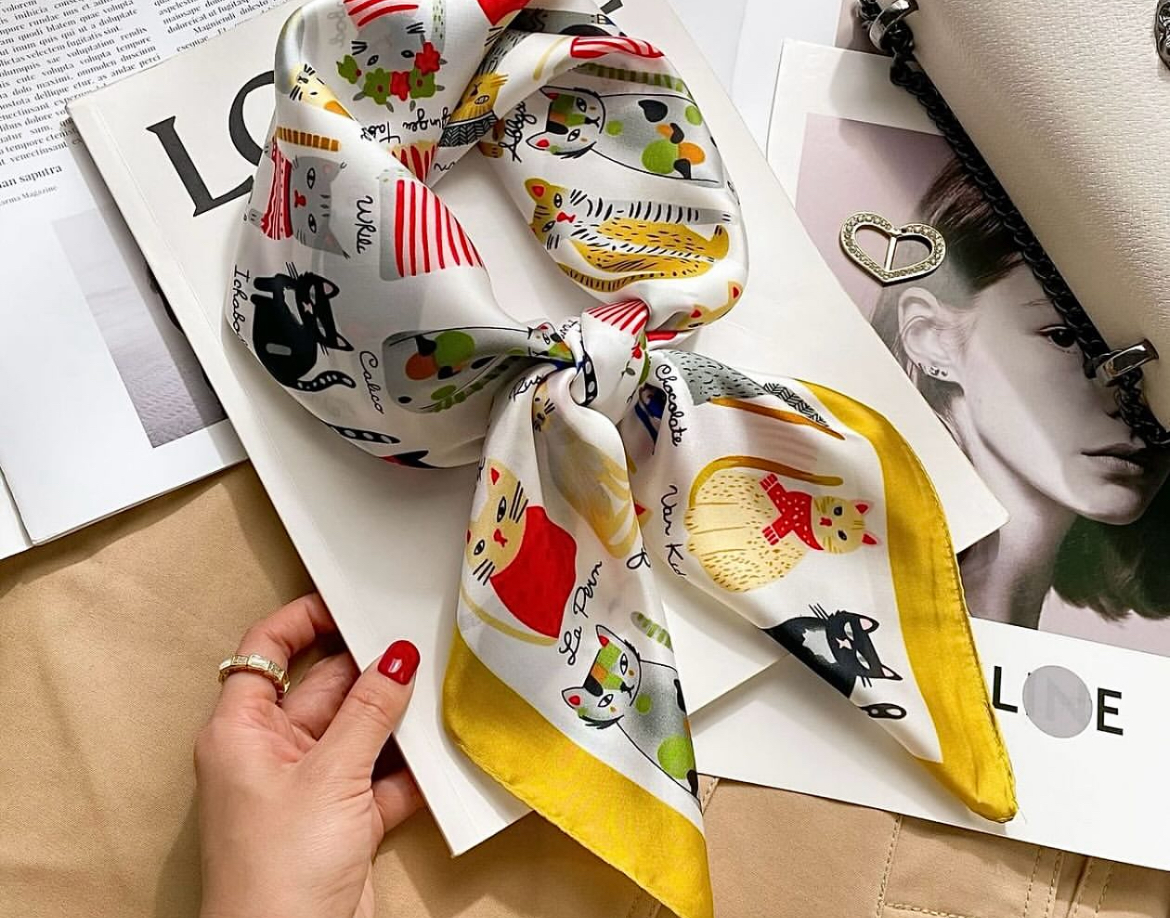 مینی اسکارف ابریشم زنانه مدل گربه رنگی