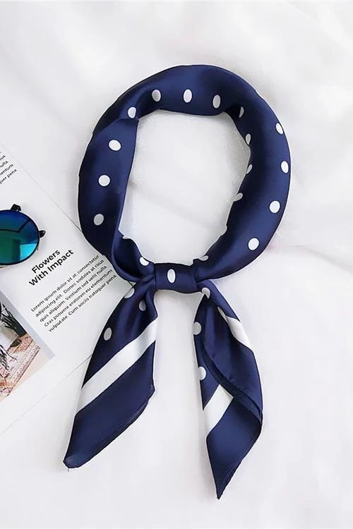 مینی اسکارف ابریشم سیلک زنانه مدل توپ توپی سرمه ای