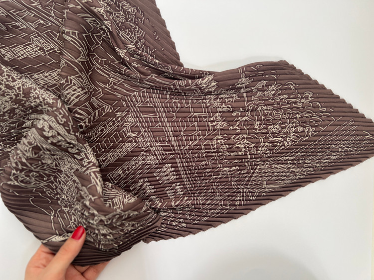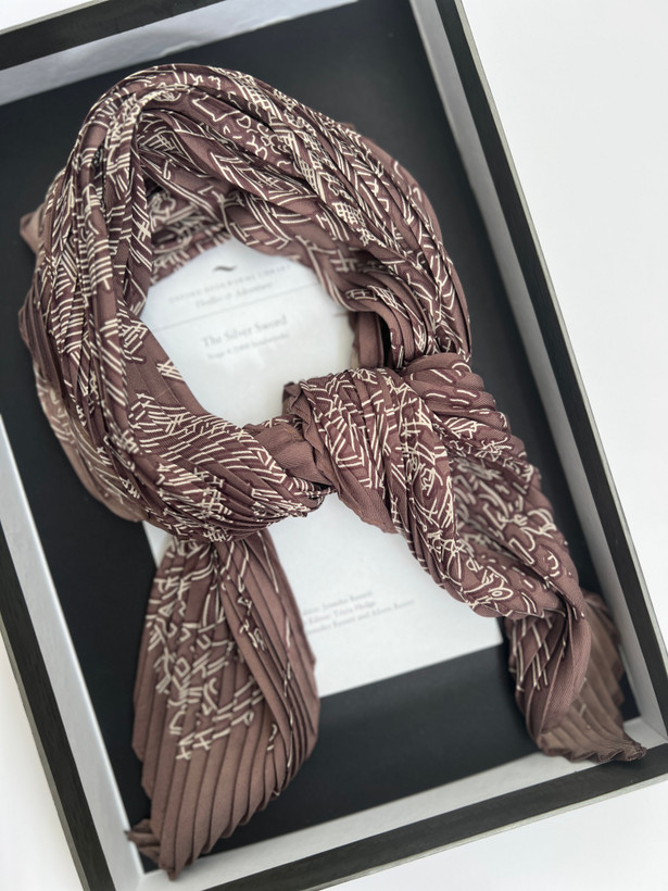 اسکارف دستمال گردن پلیسه ابریشم زنانه خط خطی قهوه ای