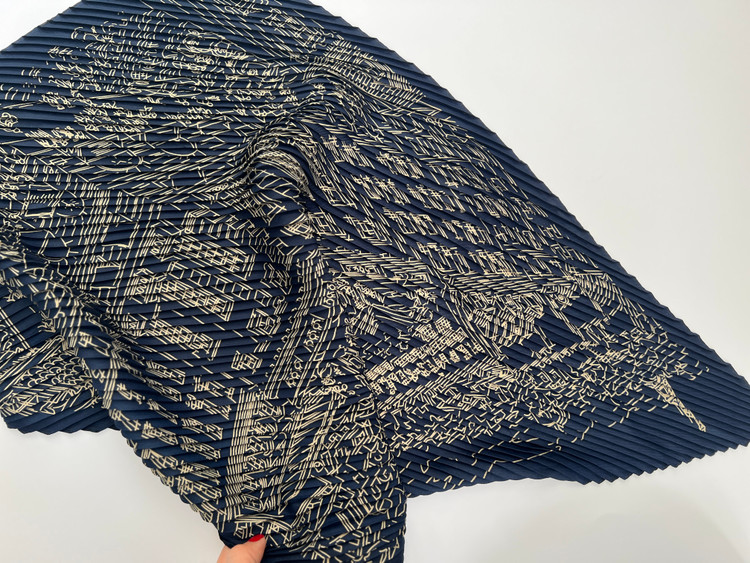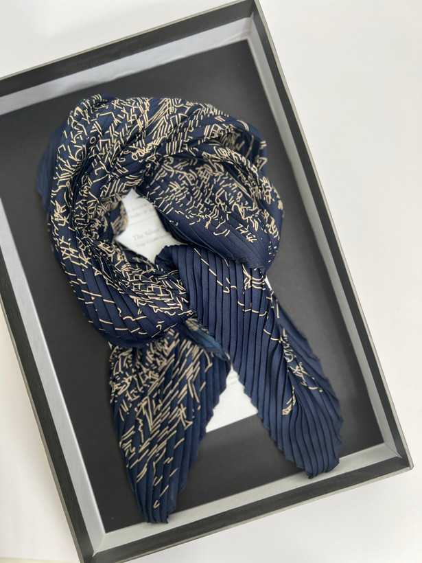 اسکارف دستمال گردن پلیسه ابریشم زنانه مدل خط خطی سرمه ای
