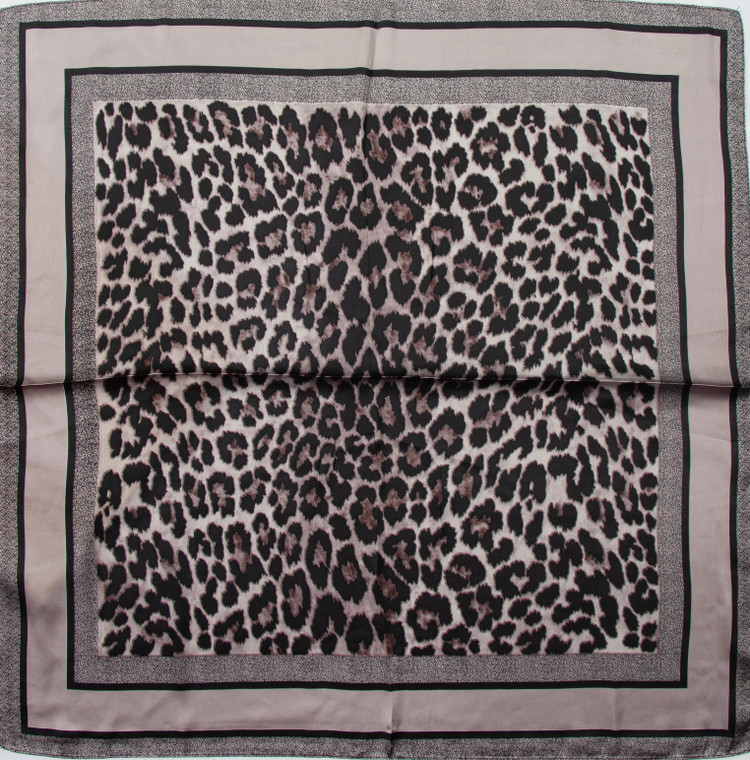 مینی اسکارف سیلک ابریشم زنانه پلنگی طوسی