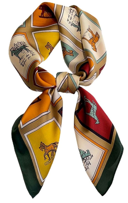 مینی اسکارف ابریشم سیلک زنانه اسب کارتونی حاشیه سبز