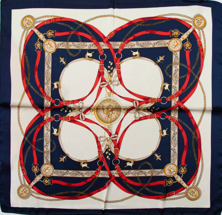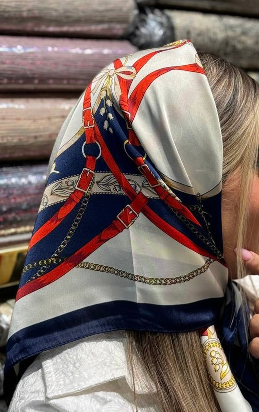مینی اسکارف ابریشم سیلک زنانه مدل زنجیری سورمه ای قرمز