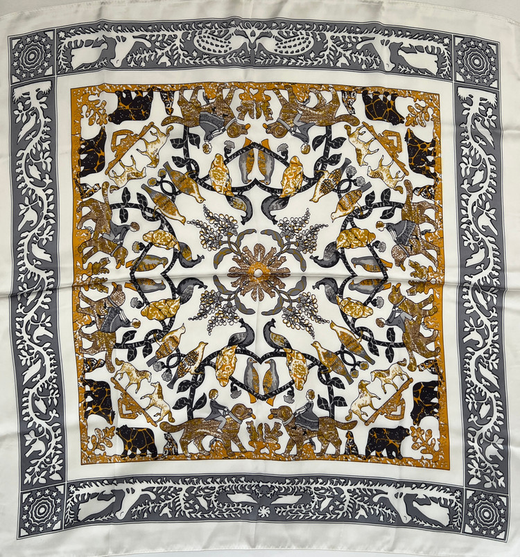 مینی اسکارف ابریشم سیلک زنانه مدل حیوانات کرم