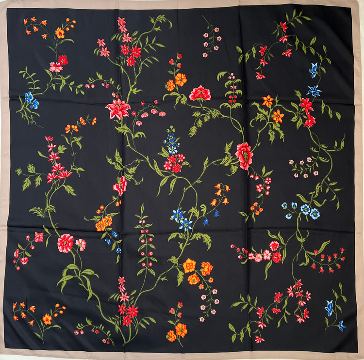 روسری مدیوم اسکارف قواره 90 ابریشم زنانه مدل گلدار مشکی