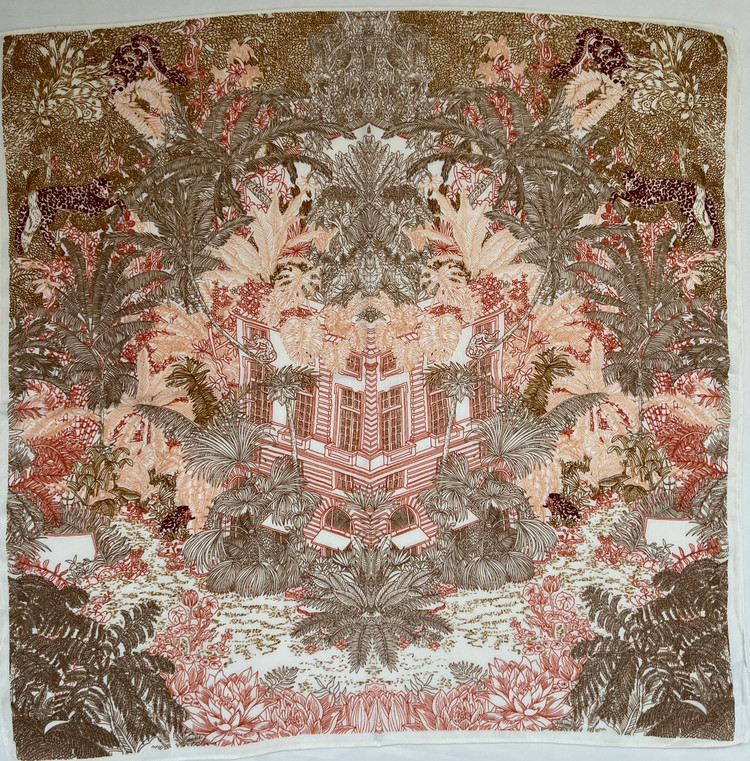 مینی اسکارف نخی کشمیر زنانه مدل جنگل کرم