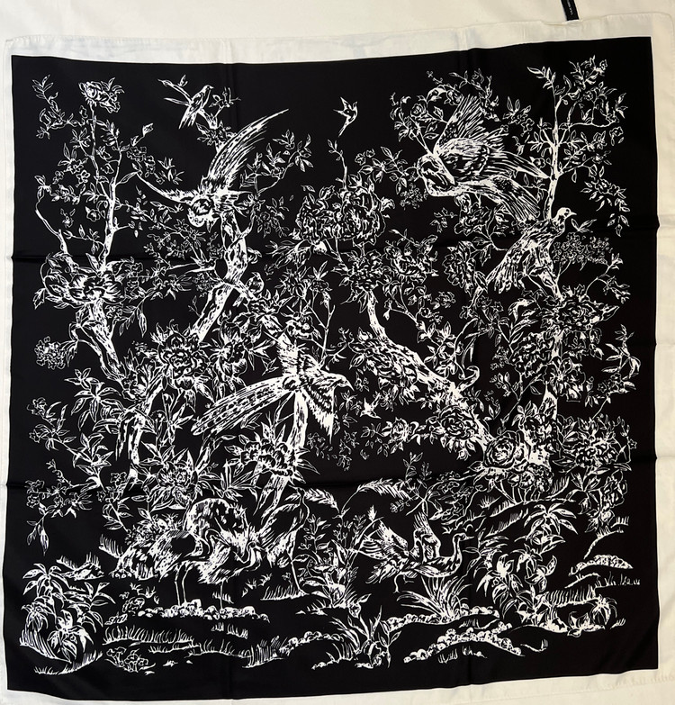 روسری مدیوم اسکارف قواره 90 ابریشم زنانه مدل پرنده زمینه مشکی