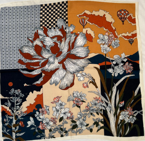 روسری مدیوم اسکارف قواره 90 ابریشم زنانه مدل خورشید کرم
