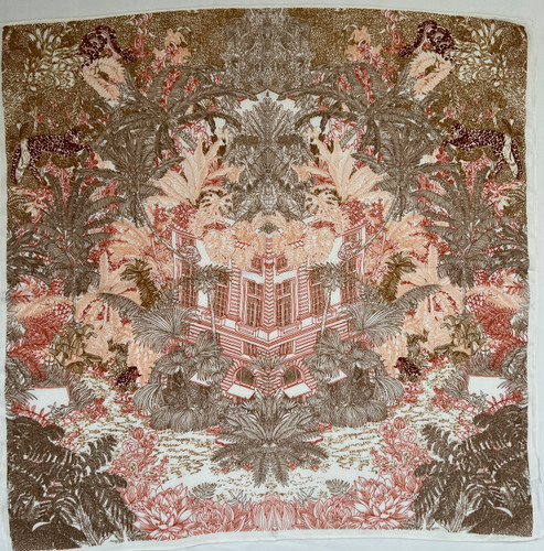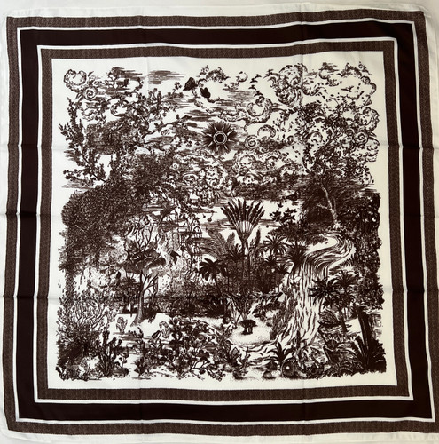 روسری مدیوم اسکارف قواره 90 ابریشم زنانه مدل جنگل حاشیه قهوه ای