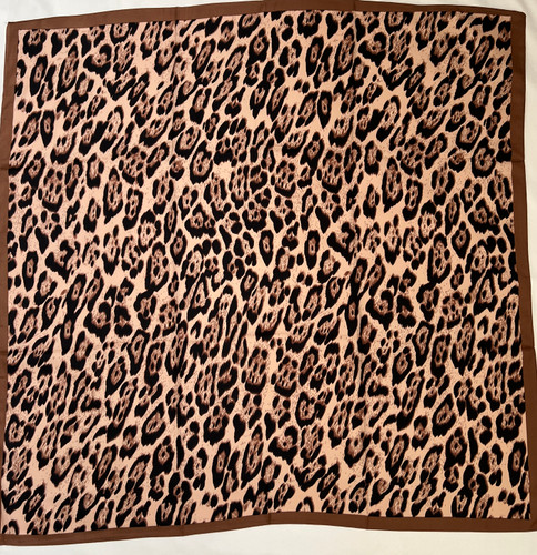 روسری مدیوم اسکارف قواره 90 ابریشم زنانه مدل پلنگی حاشیه قهوه ای