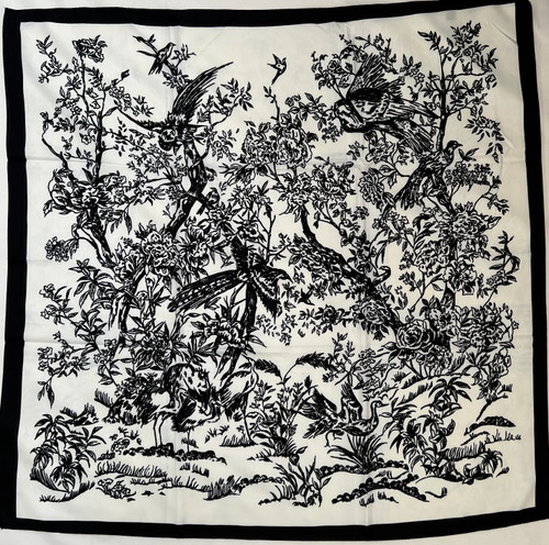 روسری مدیوم اسکارف قواره 90 ابریشم زنانه مدل پرنده زمینه مشکی