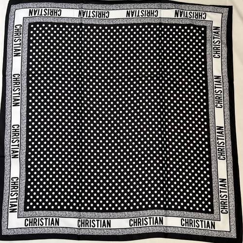 روسری مدیوم اسکارف قواره 90 ابریشم زنانه مدل توپ توپی سفید مشکی