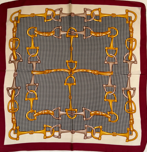 مینی اسکارف ابریشم زنانه مدل نعل حاشیه قرمز