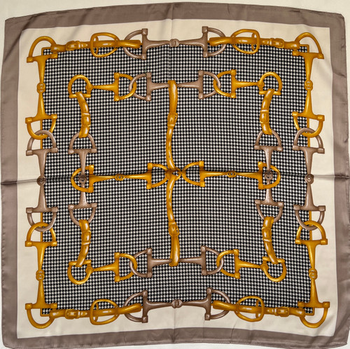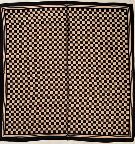 مینی اسکارف ابریشم سیلک زنانه مدل شطرنجی کرم مشکی
