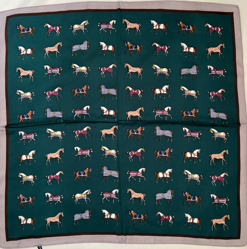 مینی اسکارف ابریشم سیلک زنانه اسب کارتونی حاشیه سبز