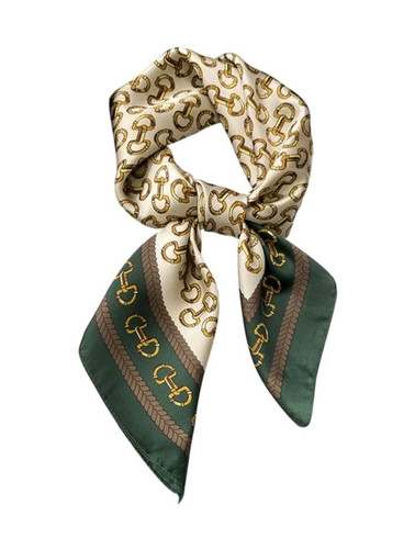 مینی اسکارف ابریشم سیلک زنانه مدل زنجیری زیتونی