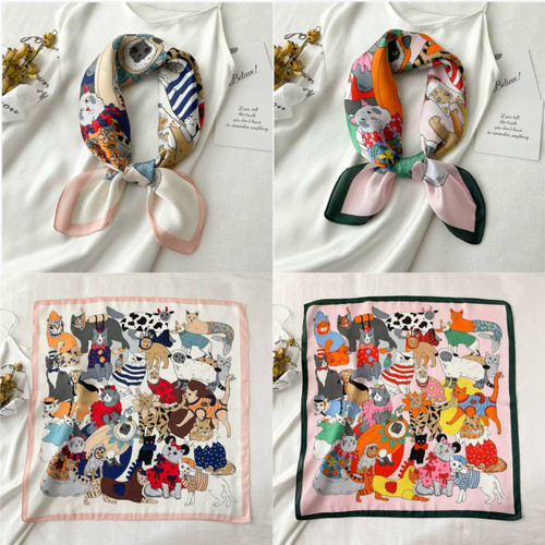 مینی اسکارف ابریشم زنانه مدل گربه رنگی