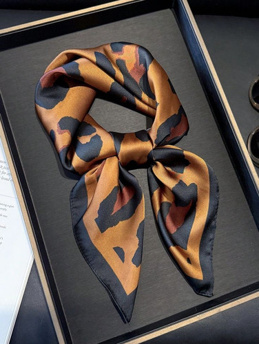 مینی اسکارف ابریشم سیلک زنانه مدل پلنگی درشت قهوه ای