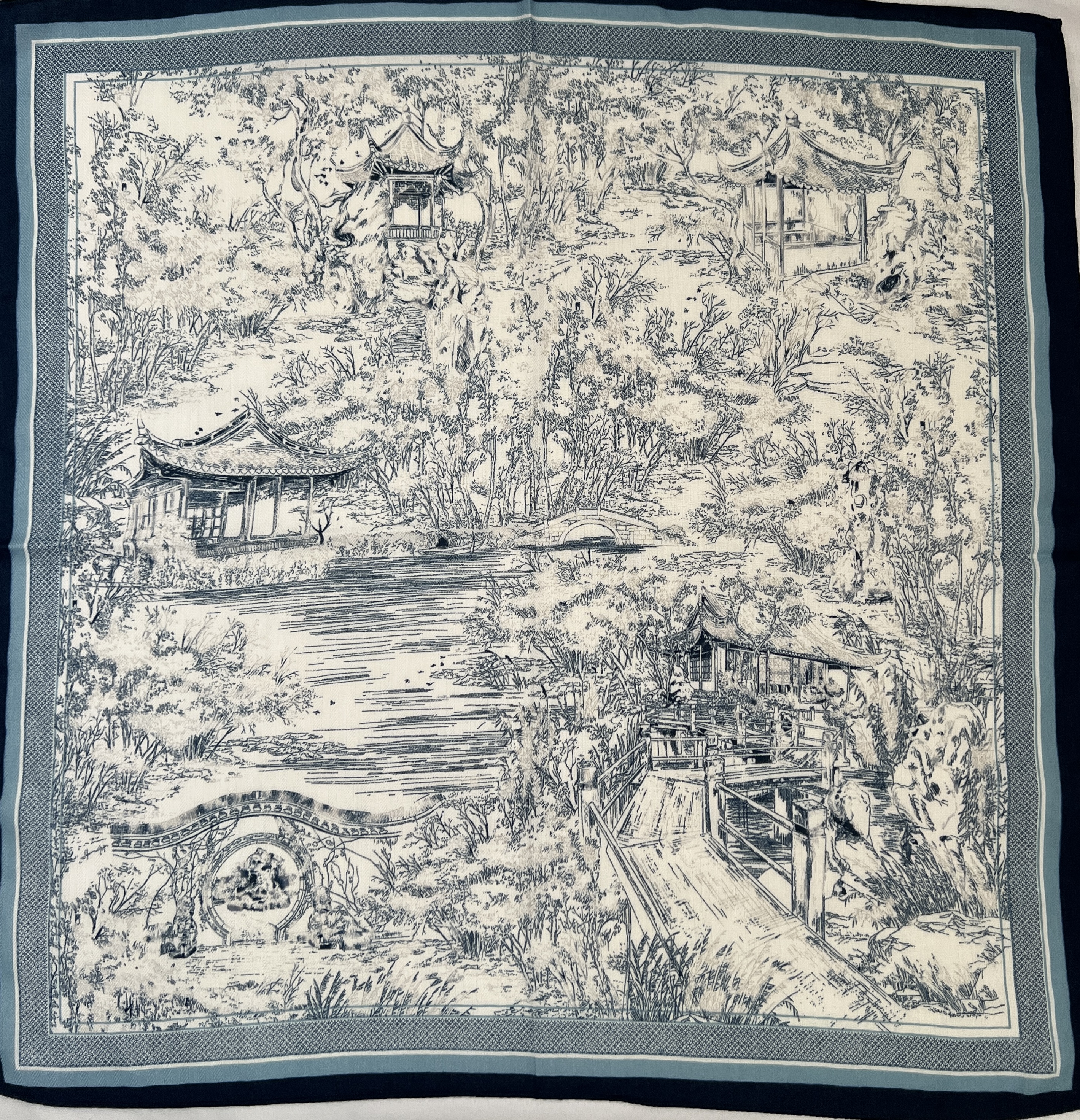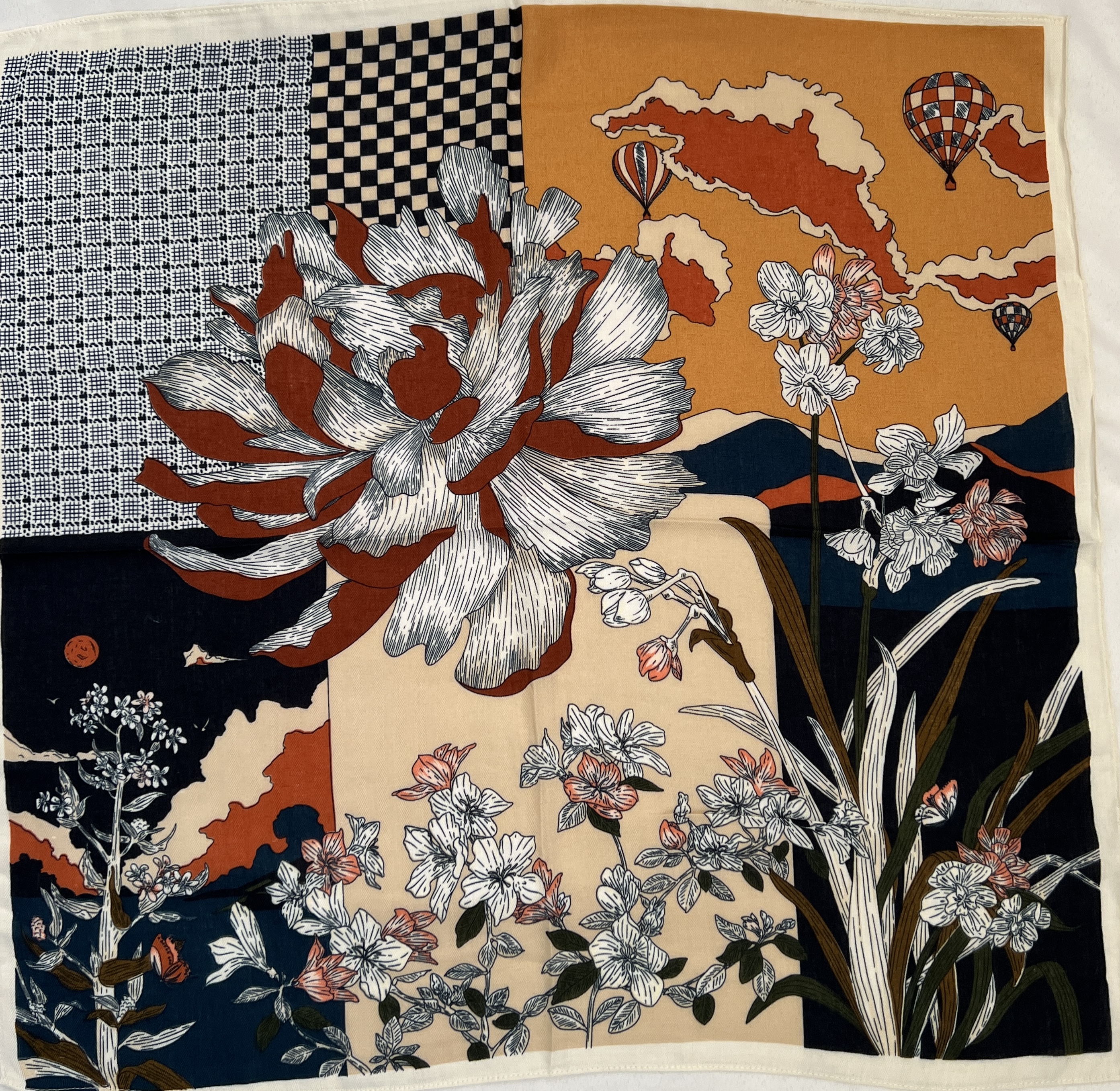 مینی اسکارف ابریشم سیلک زنانه مدل نقشه سورمه ای