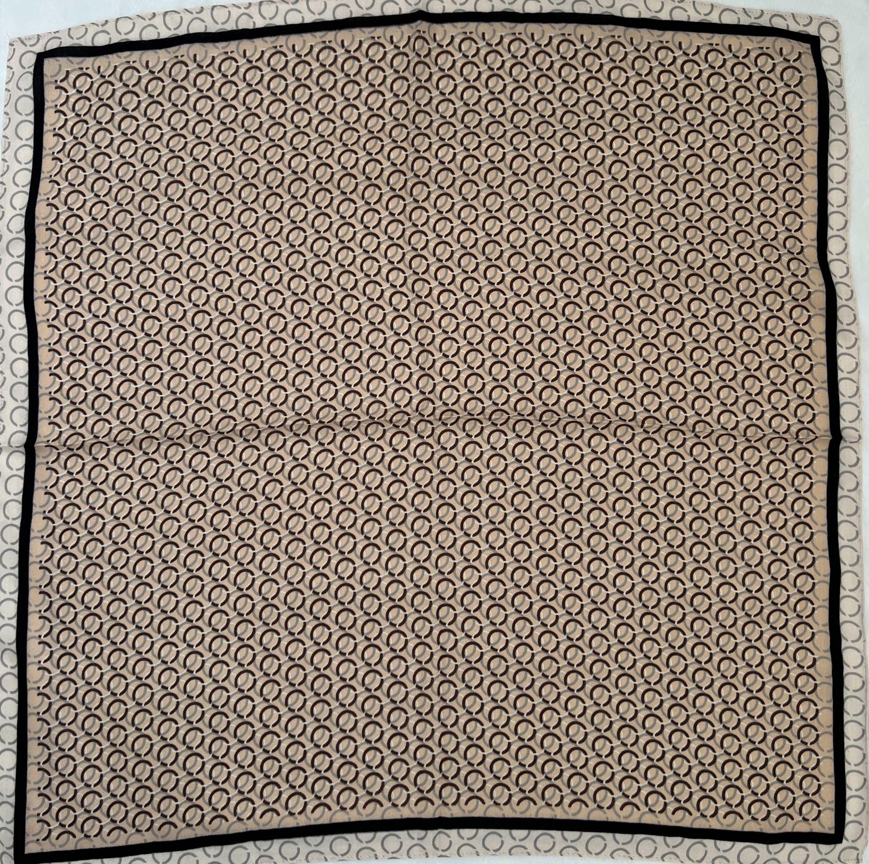 مینی اسکارف ابریشم سیلک زنانه مدل پیچازی حاشیه نسکافه ای