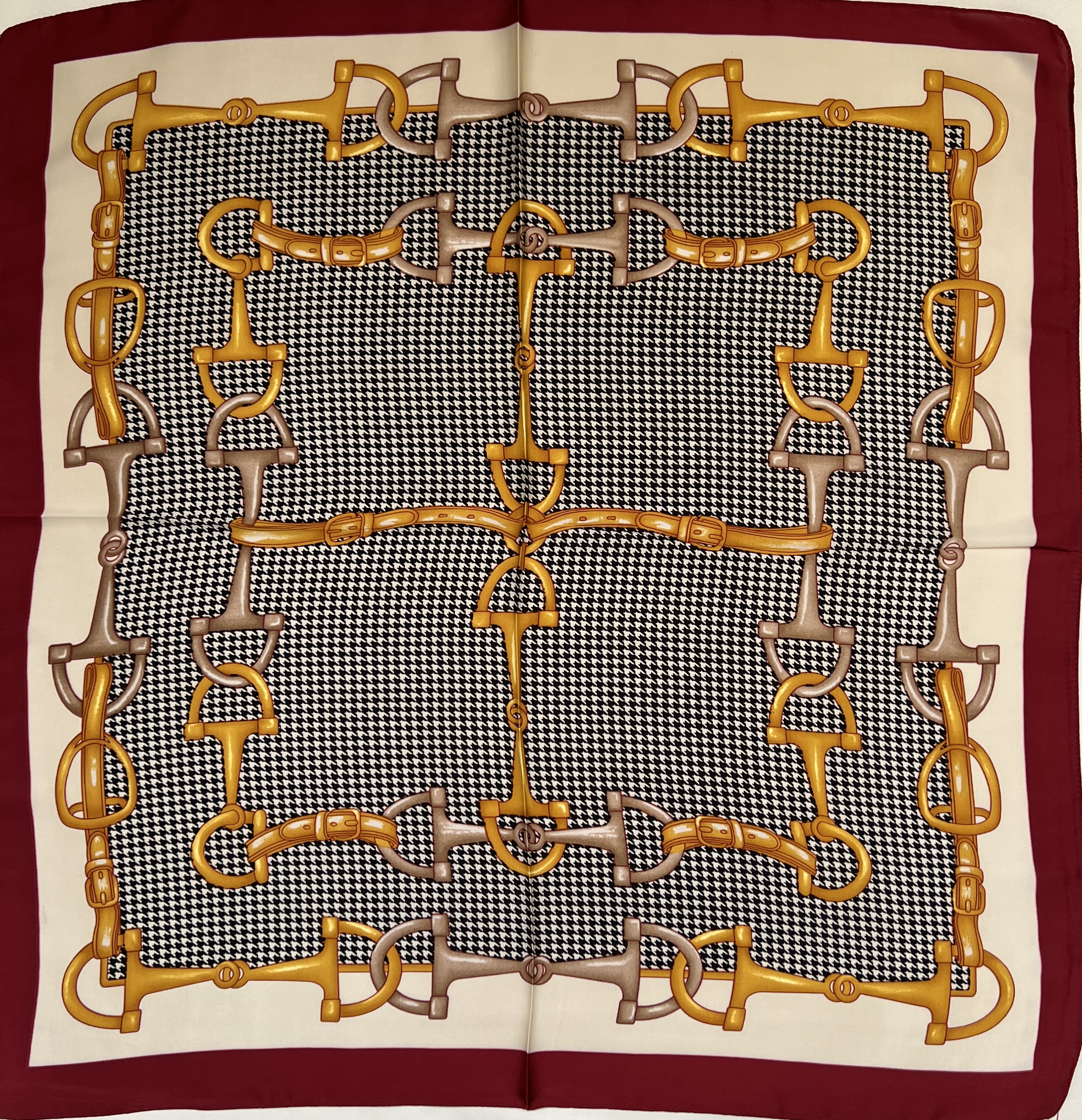 مینی اسکارف ابریشم زنانه مدل نعل حاشیه قرمز