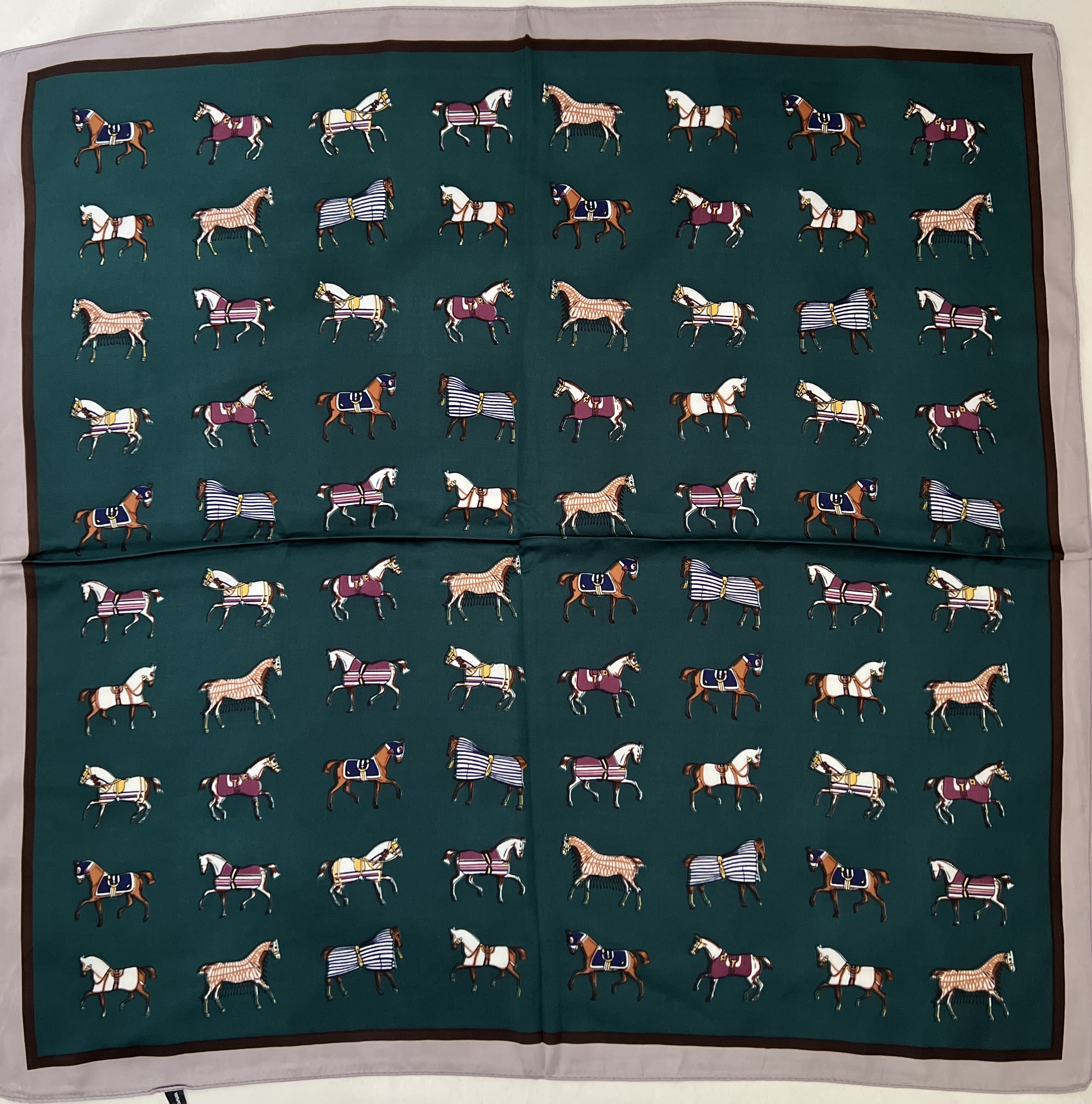 مینی اسکارف ابریشم سیلک زنانه اسب کارتونی حاشیه سبز