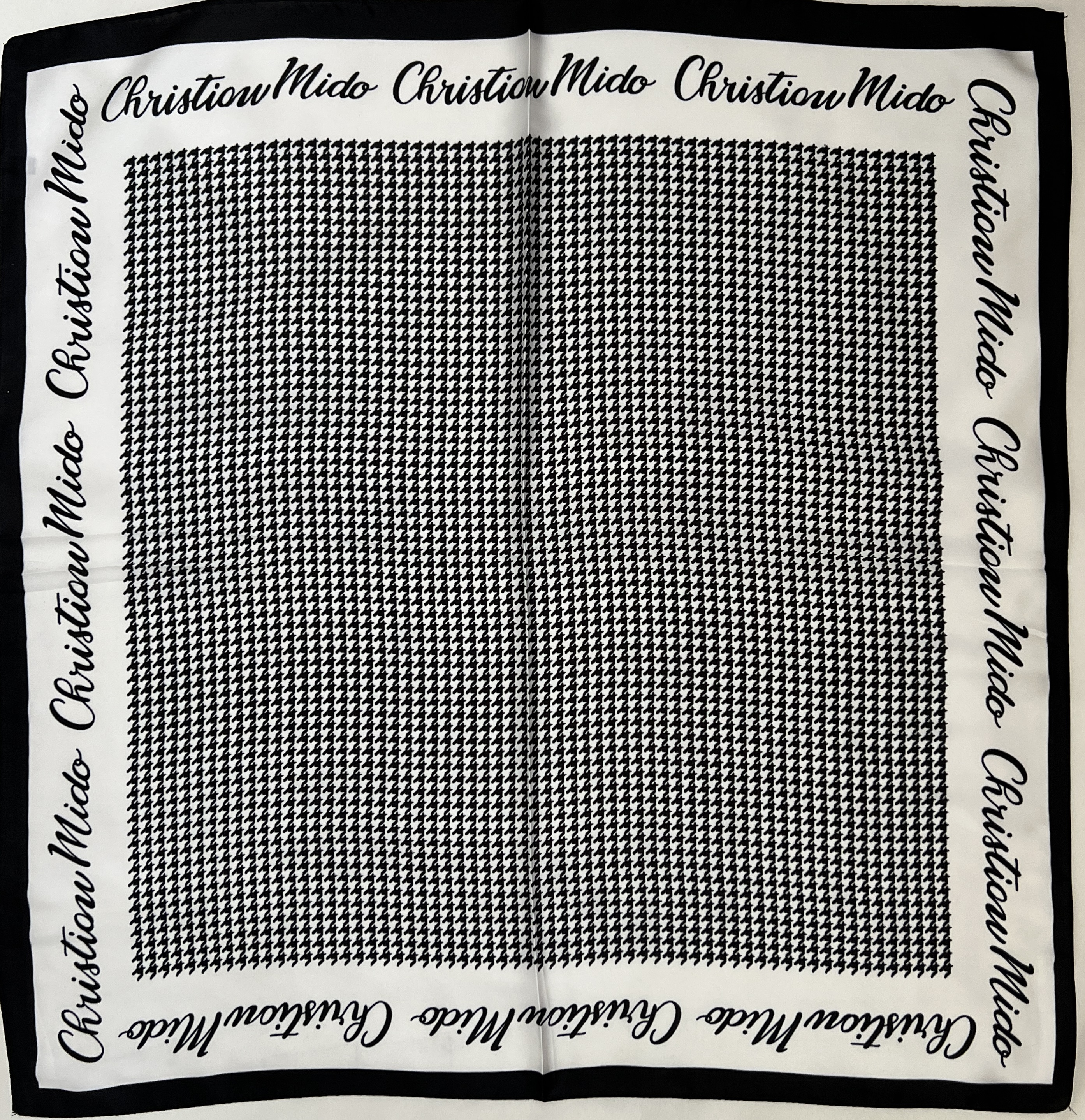 مینی اسکارف ابریشم سیلک زنانه پیچازی سفیدمشکی