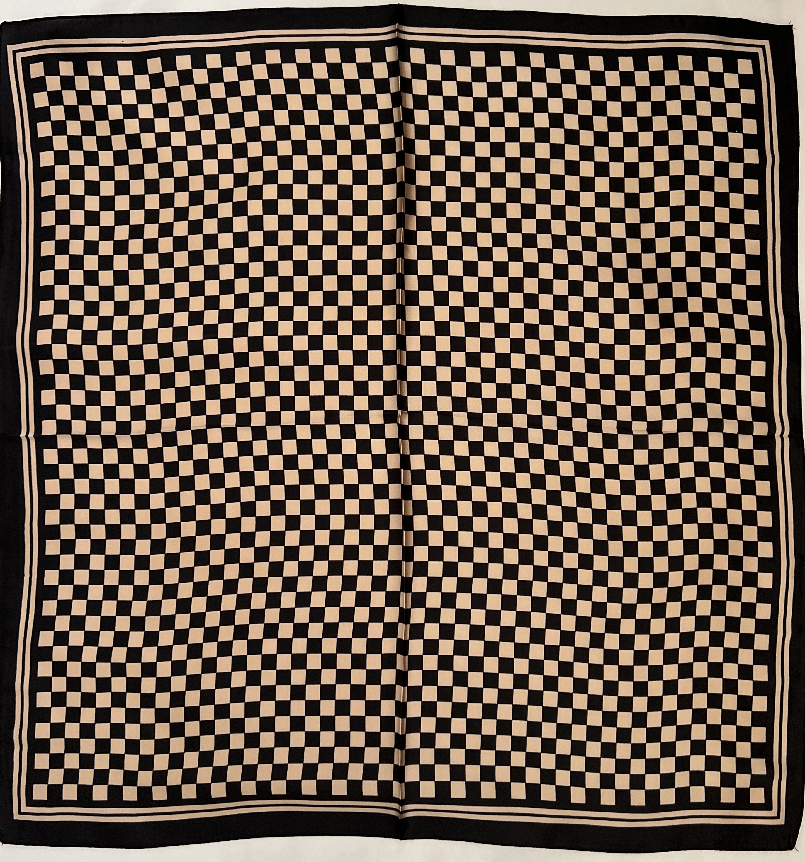 مینی اسکارف ابریشم سیلک زنانه مدل شطرنجی کرم مشکی