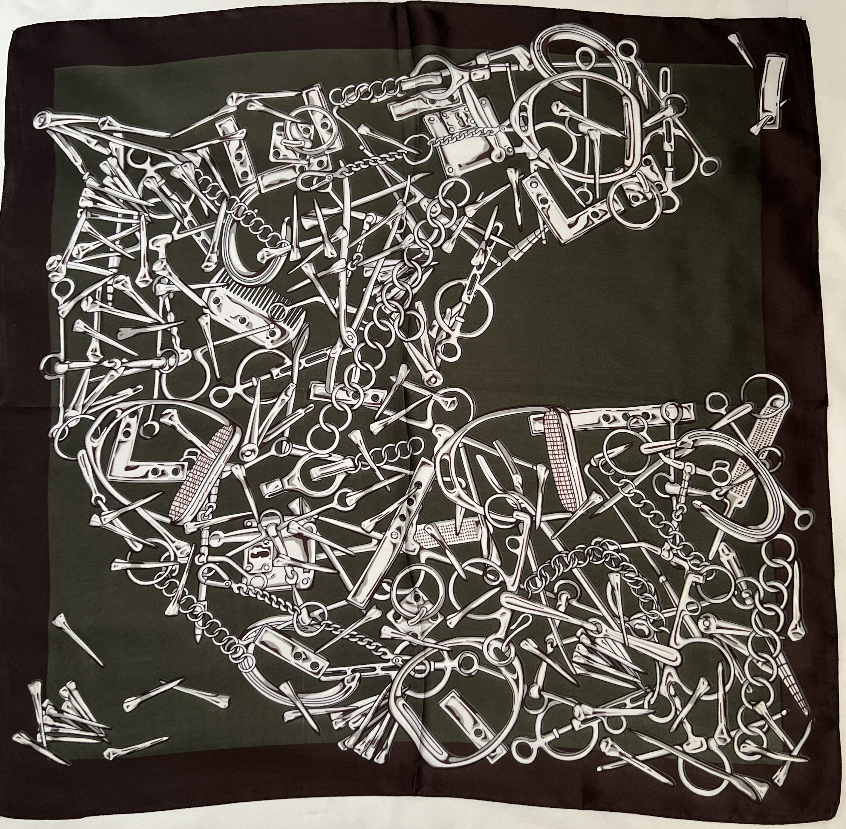 مینی اسکارف ابریشم سیلک زنانه مدل زنجیری زیتونی