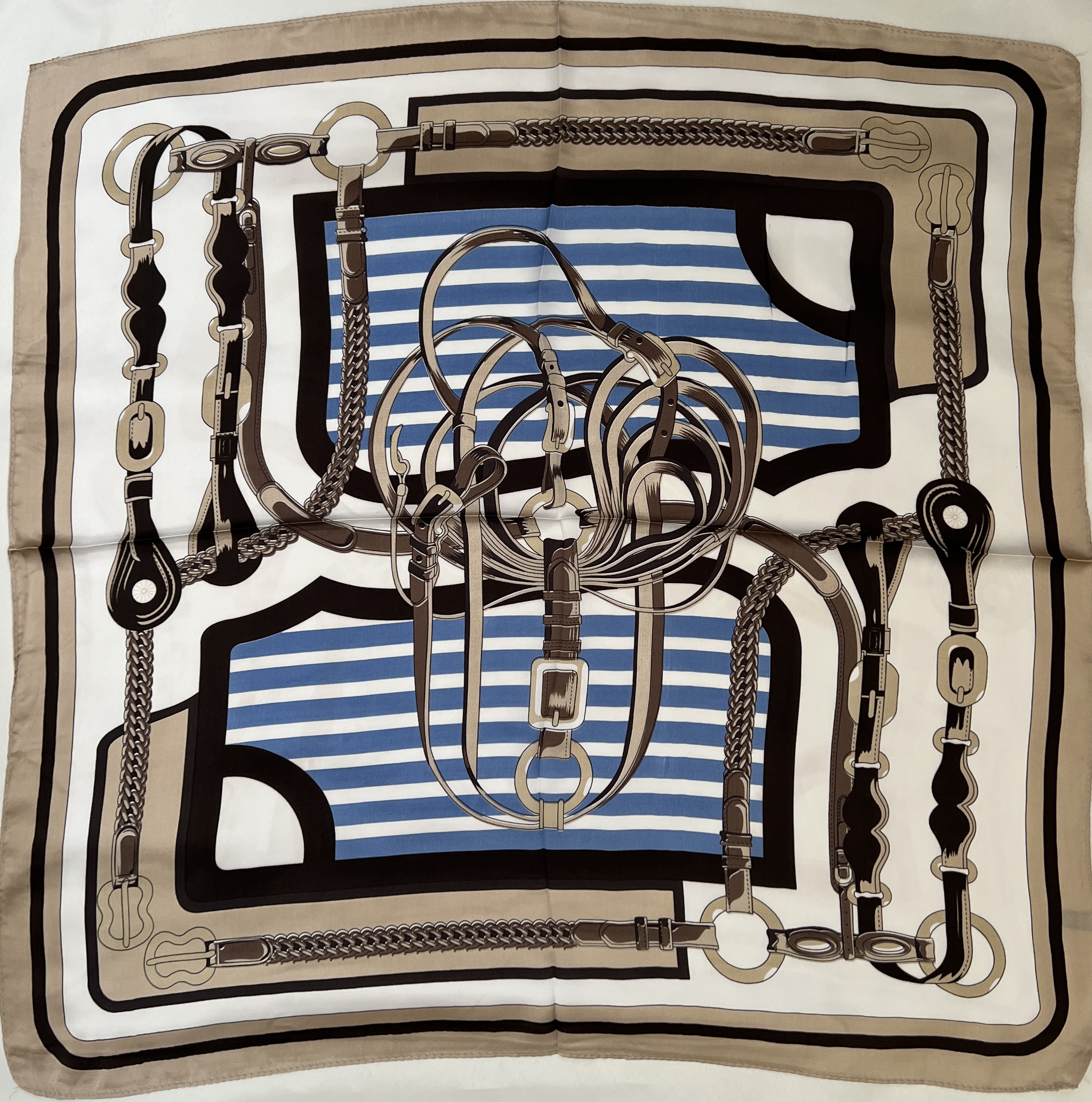 مینی اسکارف ابریشم سیلک زنانه مدل زنجیری نسکافه ای ابی