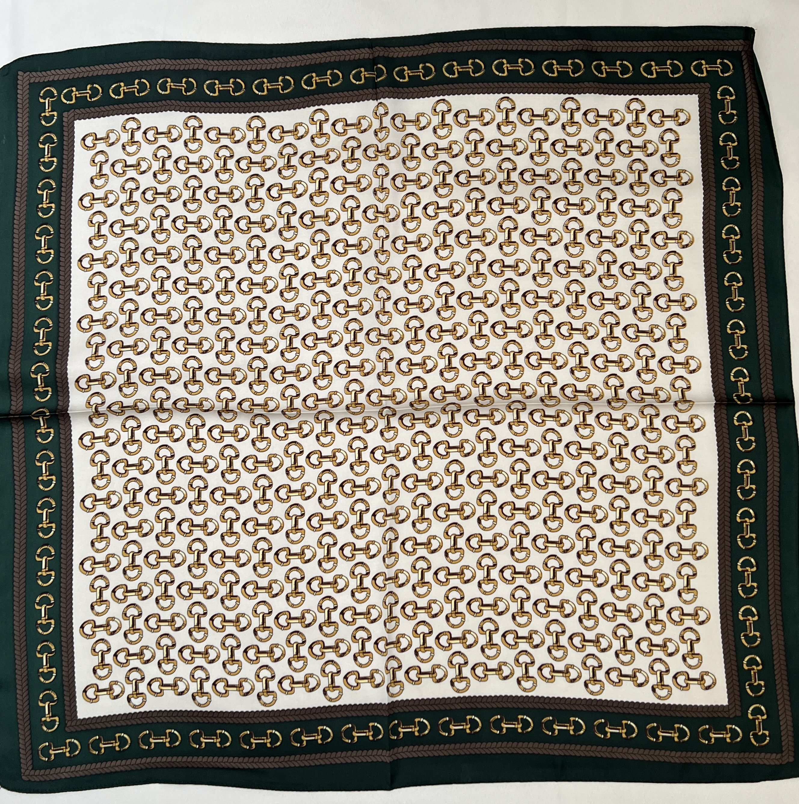مینی اسکارف ابریشم سیلک زنانه مدل کلاسیک حاشیه سبز